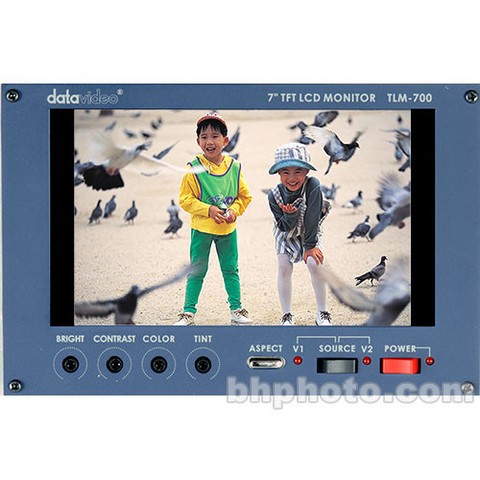 El monitor LCD Datavideo TLM-700 de 7 "es un monitor a color externo, que se utiliza con sistemas de bastidores de cámaras portátiles donde se necesita una supervisión mejorada. La unidad viene totalmente equipada con una sombrilla adicional, por lo que es una solución perfecta tanto para el campo como para el estudio. Las características como la autodetección NSTC / PAL y 16: 9/4: 3 hacen que el TLM-700 sea un monitor increíble por el precio.