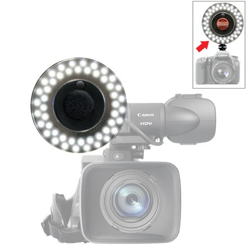 El LED rotativo RingLight Stealth Edition de Rotolight RL48-B tiene 48 LED Grado A ultra brillantes con un equivalente de 80W. Se puede conectar a videocámaras y DSLR durante hasta 4 horas de luz continua sin causar sombras o ojos rojos.